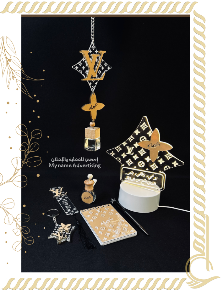 (تعليقة سيارة - فواحة عطرية مع التعليقة - فواحة مكيف - ميدالية - مذكرة ملاحظات حجم (10cm *7cm)- قلم -فاصل كتاب -أبجورة بسلك يو اس بي)