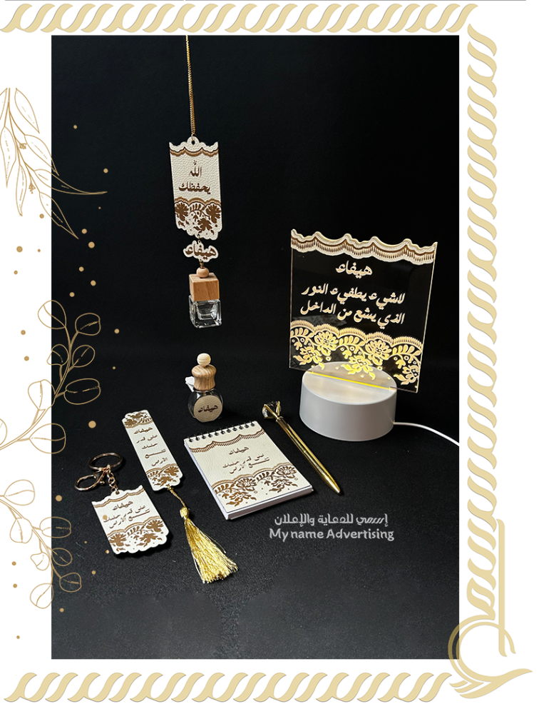 (تعليقة سيارة - فواحة عطرية مع التعليقة - فواحة مكيف - ميدالية - مذكرة ملاحظات حجم (10cm *7cm)- قلم -فاصل كتاب -أبجورة بسلك يو اس بي)