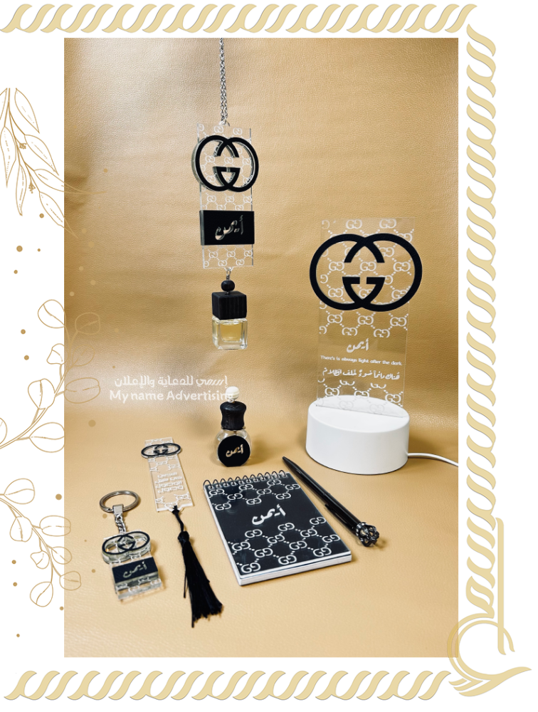 (تعليقة سيارة - فواحة عطرية مع التعليقة - فواحة مكيف - ميدالية - مذكرة ملاحظات حجم (10cm *7cm)- قلم -فاصل كتاب -أبجورة بسلك يو اس بي)